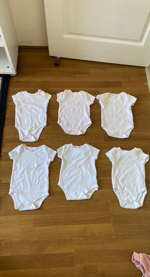 Yumuşak pamuklu kumaştan, beyaz kısa kollu ve bisiklet yaka 6'lı bebek body seti. Rahat ve sade tarz sunar.