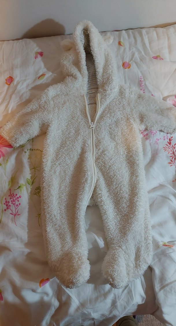 Beyaz, kapüşonlu ve kürk detaylı yumuşak kumaştan yapılmış bebek tulumu, soğuk havalar için uygundur.Az kullanıldı zaten bebek ne kadar uzun kullanabilir. next baby markasının.trendyoldan normal fiyatlarına bakabilirsiniz.Fiyat konuşabiliriz.