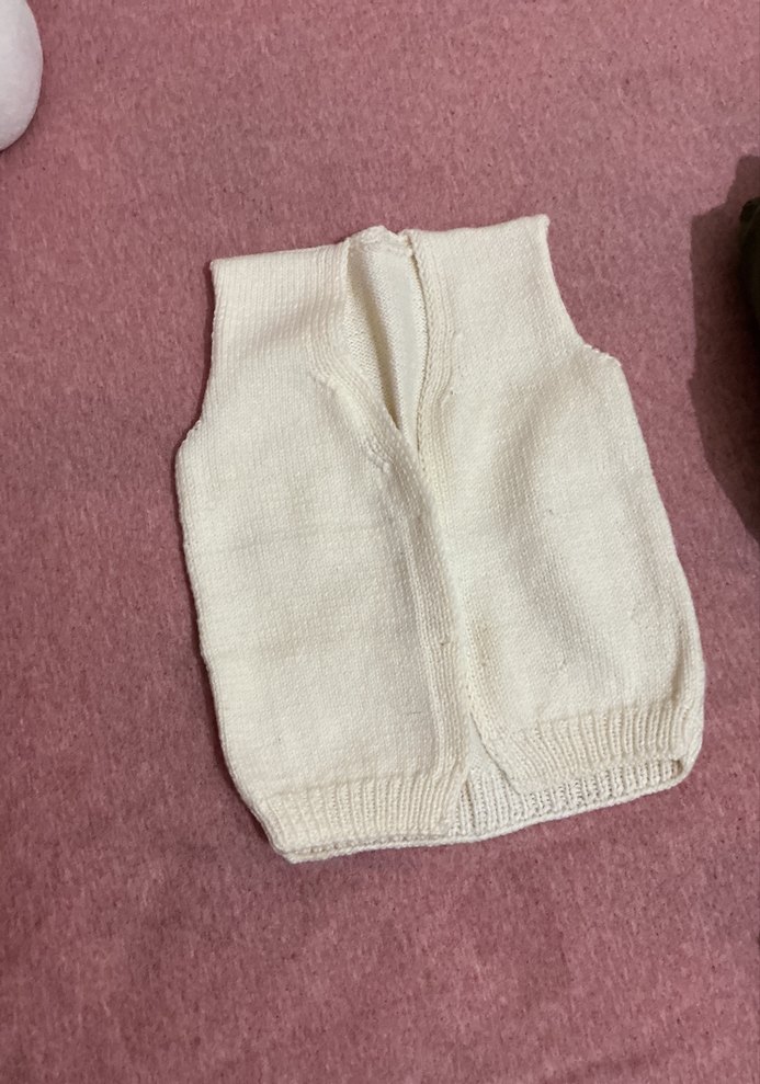 Kız çocukları için örme, beyaz renkli, v yaka ve kolsuz, dar kesim süveter. Sokak stiline uygun.