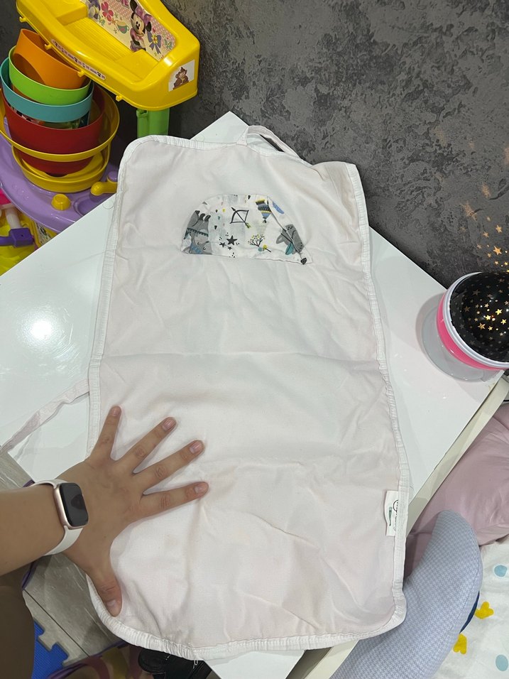 Beyaz baskılı, yumuşak ve kolay temizlenen bebek bezi değiştirme matı. Hiç kullanılmamıştır sadece yıkandı