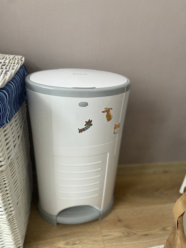 Ayak pedallı, beyaz bebek bezi atık kutusu, Bebek hijyen ürünlerini kokusuz tutar Korbell marka