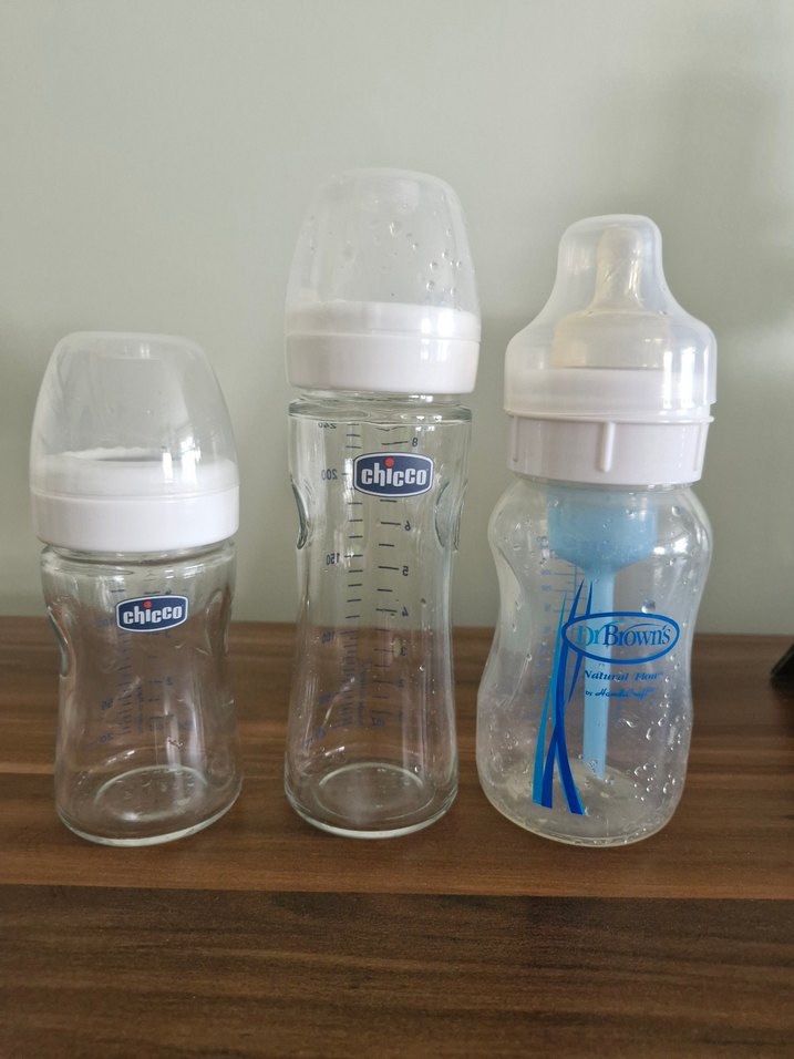 3 ADET FİYATIDIR ....2 adet cam chicco biberon 150 ml ve 240 ml,1 adette 240 ml plastik Dr Browns gaz önleyici kolit bebekler için kullanılan doktorların önerdiği biberon, temizdir.Chicco biberonların emzik kısımlarını yoktur