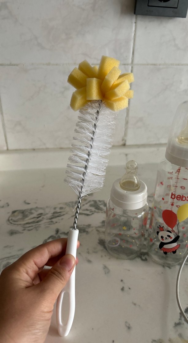 Beyaz saplı, renkli yumuşak sarı sünger ucu olan bebek biberon temizleme fırçası, şişeleri etkili şekilde temizler. Sayfamdaki diğer ürünlere göz atmayı unutmayın :)