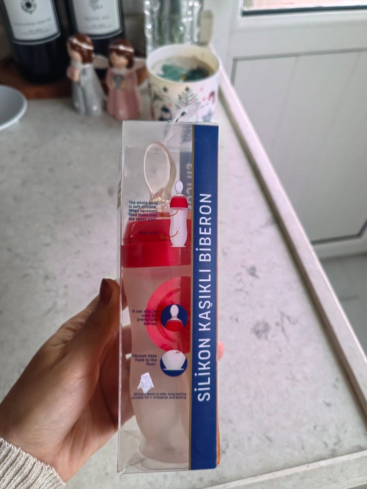Bebedor bebe biberonu pastel pembe renkte, silikon kaşıklı uca sahiptir. Katı gıdaya geçişi destekler ve BPA içermez. 0+ ay için uygundur.