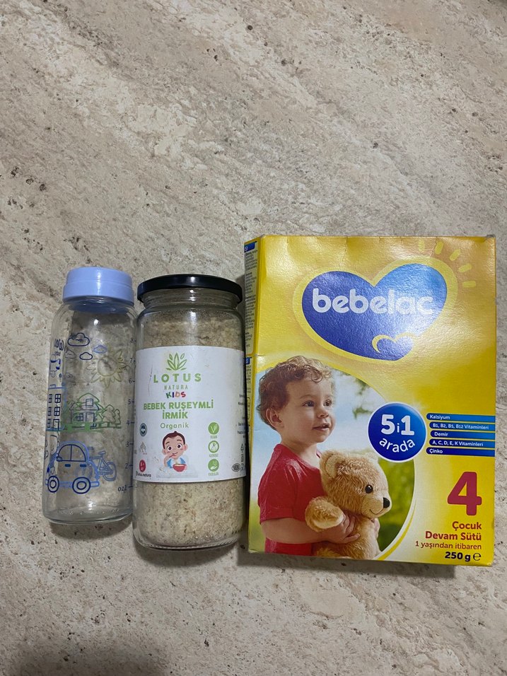 Bebek Biberonu ve Bebelac 4 Devam Sütü, ruşemli irmik