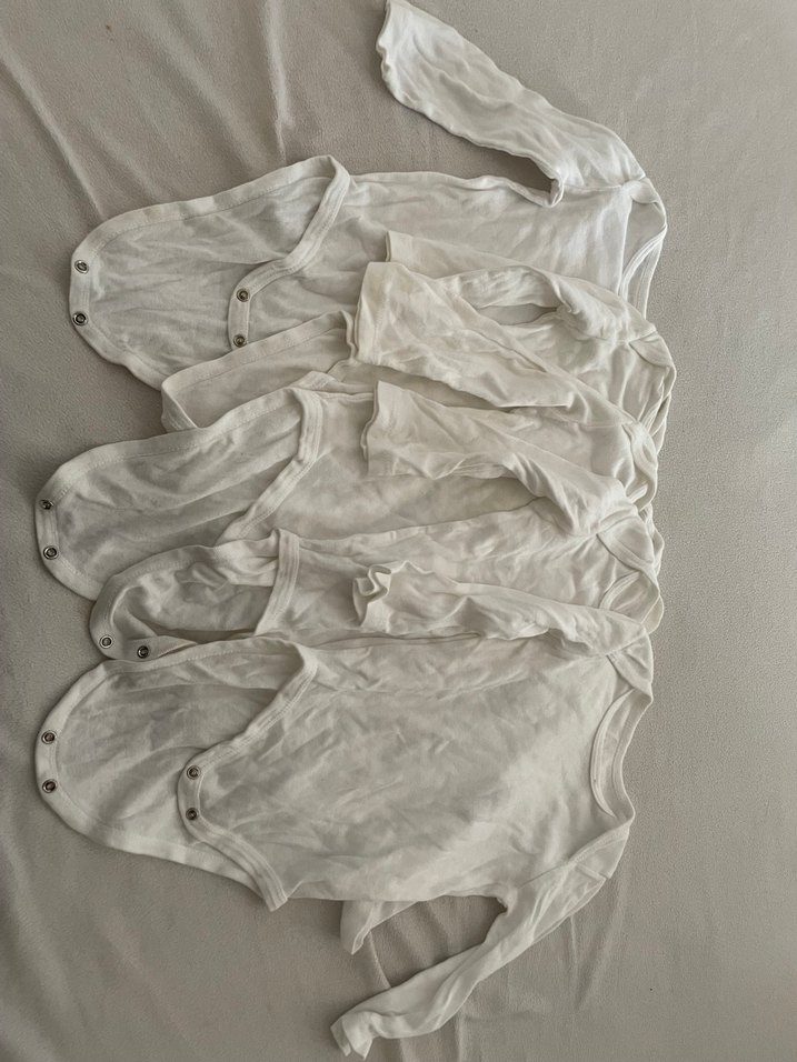 5 adet hellobaby uzun kollu bebek body bazısında leke var fotoğrafta görünüyor genel olarak kullanıma engel bir durum yok
