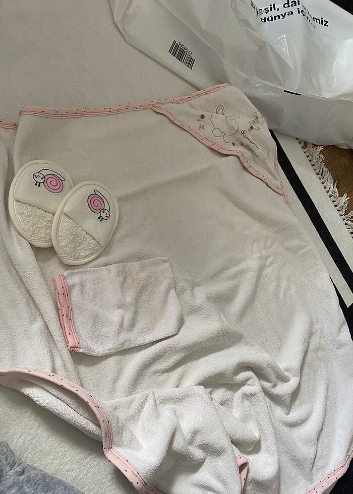 Kullanıldı , üzerinde hafif sarı lekeler var yıkanınca çıkabilir çıkarmak için uğraşmadım patikler hediyem