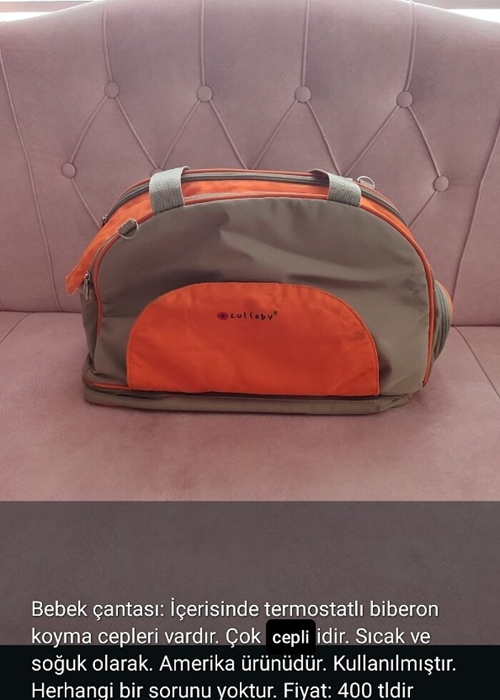 Bebek çantası. Amerika ürünüdür. İçerisi ısıya dayanıklı sıcak soğuk biberon bölümleri vardır. Harika bir ürün