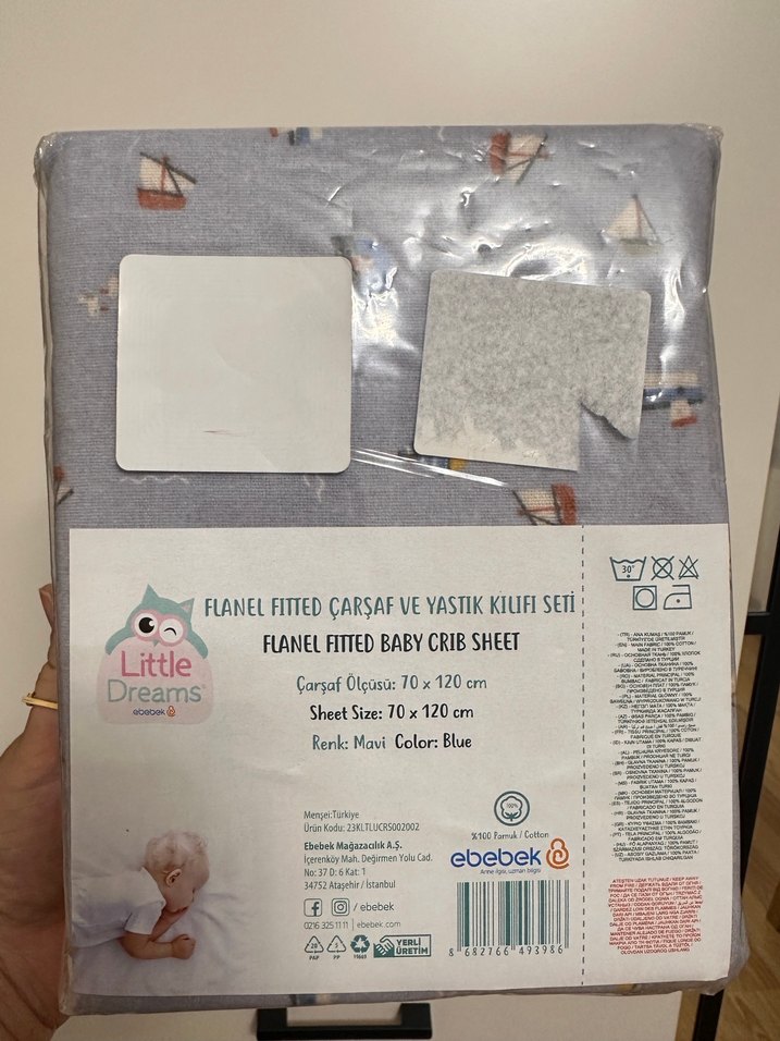 Yumuşak ve sıcak flanel kumaştan üretilmiş, 70x120 cm ölçüsünde baskılı bebek çarşafı ve yastık kılıfı seti. ️