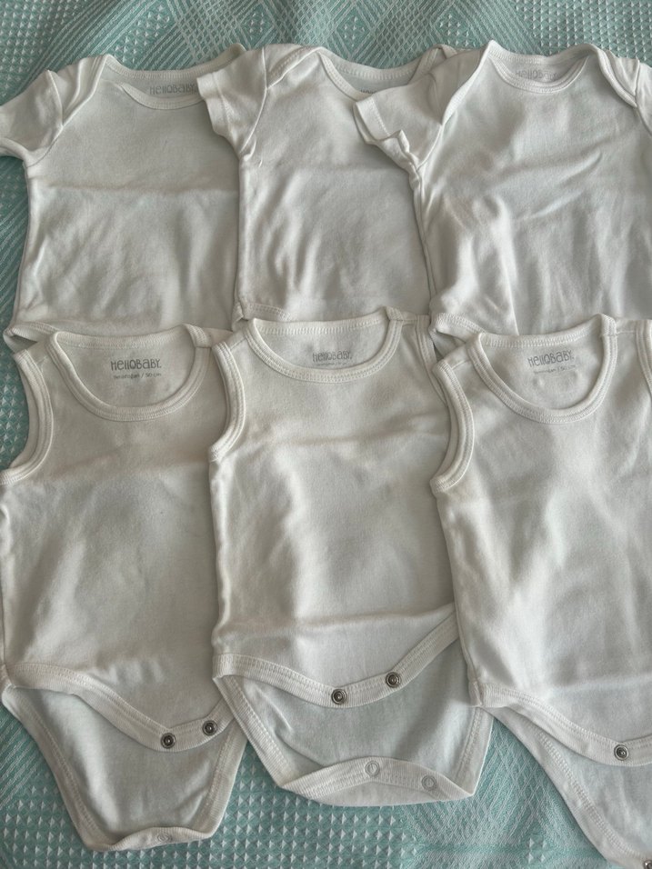 Kolsuz ve kısa kollu, beyaz pamuklu, yuvarlak yakalı bebek çıtçıtlı body seti, rahat ve sade bir tarz sunar. Yenidoğan zıbın 50 cm etiketlidir çok az kullanıldı yepyeniler. 3 kısakollu 3 askılıdır hello baby markadır mağazada adeti 70 tl dir