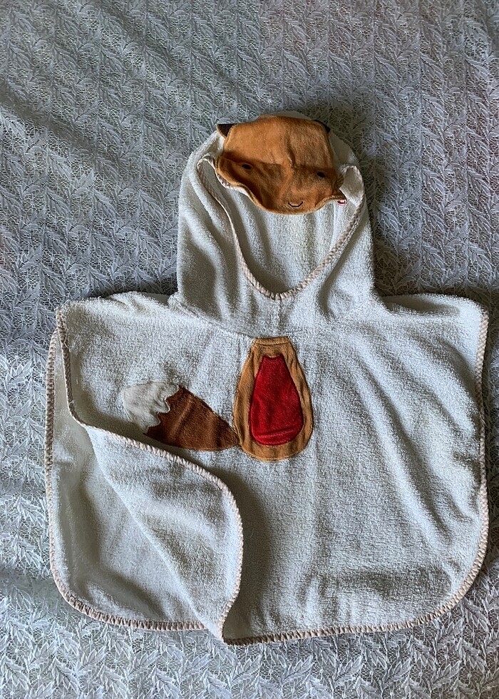 Tilki figürlü bebek bornozu. 0-1 yaş yazıyor ama 3 yaşa kadar rahatlıkla kullanabilirsiniz. Hiç bir sorunu yoktur. Banyoda da plajda da çok rahat kullanabilirsiniz