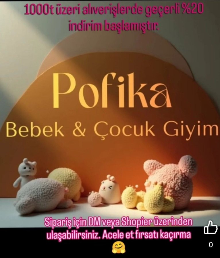 Pofika bebek ve çocuk giyimde 1000 TL üzeri alışverişlerde %20 indirim başladı. Sipariş için DM veya Shopier'den ulaşabilirsiniz. Acele edin!