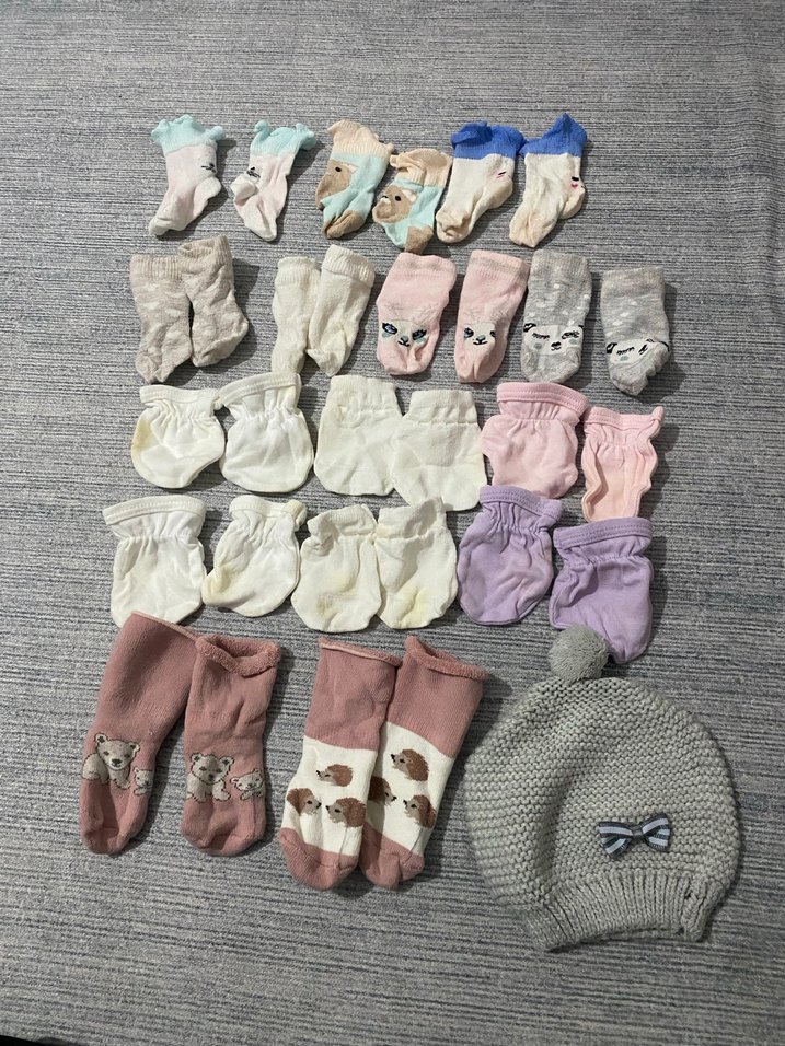 Ürünlerin hepsi birlikte gönderilecektir ürünler beklediği için beyaz eldivenlerde sararma mevcuttur ancak çoraplar da hiçbir delik yoktur çok az kullandım şapka aldığımda bu şekildeydi sol tarafında hafif açıklık gibi var başka hiçbir defosu yok 0-3 ay ve 3-6 ay arasında kullandım.