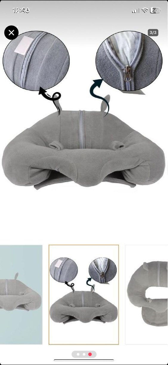 Gri renkte, yumuşak kumaş kaplı ve  fermuarlı yıkanabilir bebek dik oturtma minderi