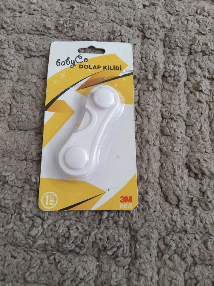 3M yapışkanlı beyaz bebek dolap kilidi, dolap ve çekmeceleri güvenle kilitler. Kolay montaj ve kullanım sağlar. ️