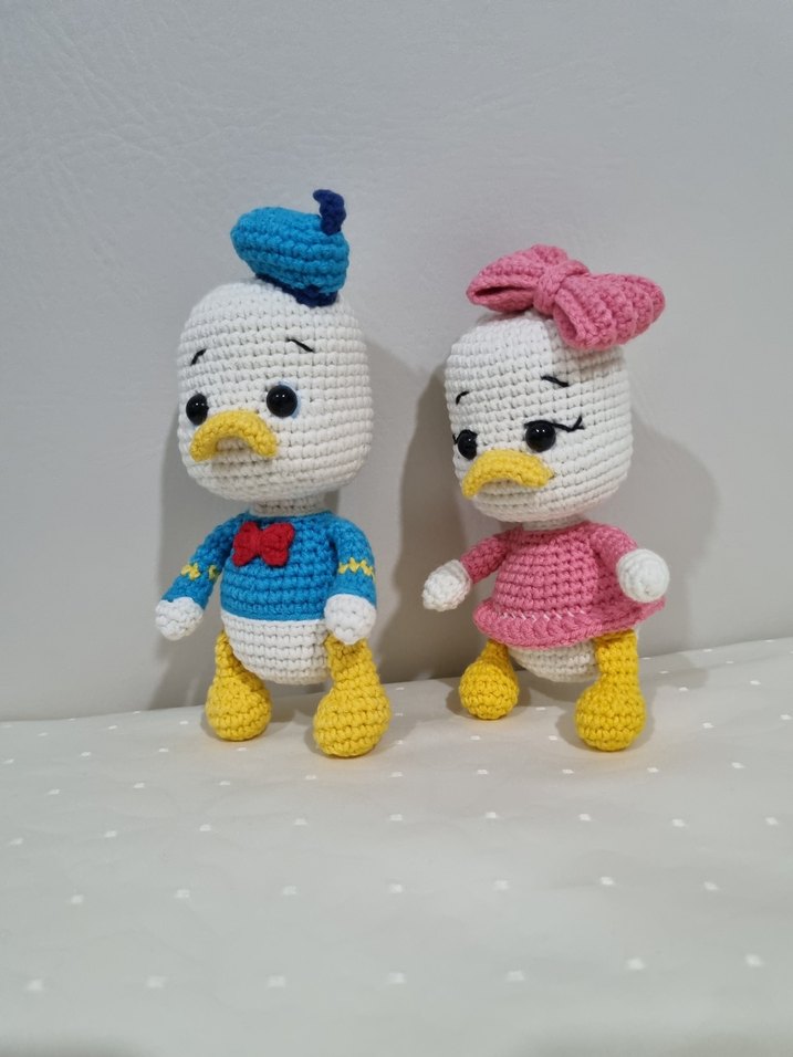 2'li oyuncak setinin fiyatıdır. Tekli almak isteyenler dolabıma bakabilir. Boyları 14cm dir. Kafası ve kolları hareket ettirilebilir. ##amigurumi #oyuncak #amigurumioyuncak #çizgifilm #disney #carton #daisy #daisyduck #ördek #donald #donaldduck #hediyelik #dişkaşıyıcı #koleksiyon #alize #alizecottongold