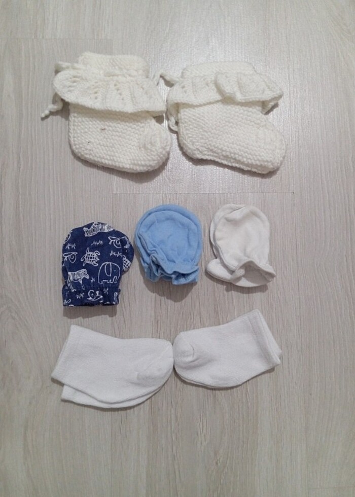 Hiç kullanılmadi yenidoğan 1 patik 3 eldiven 2 çorap