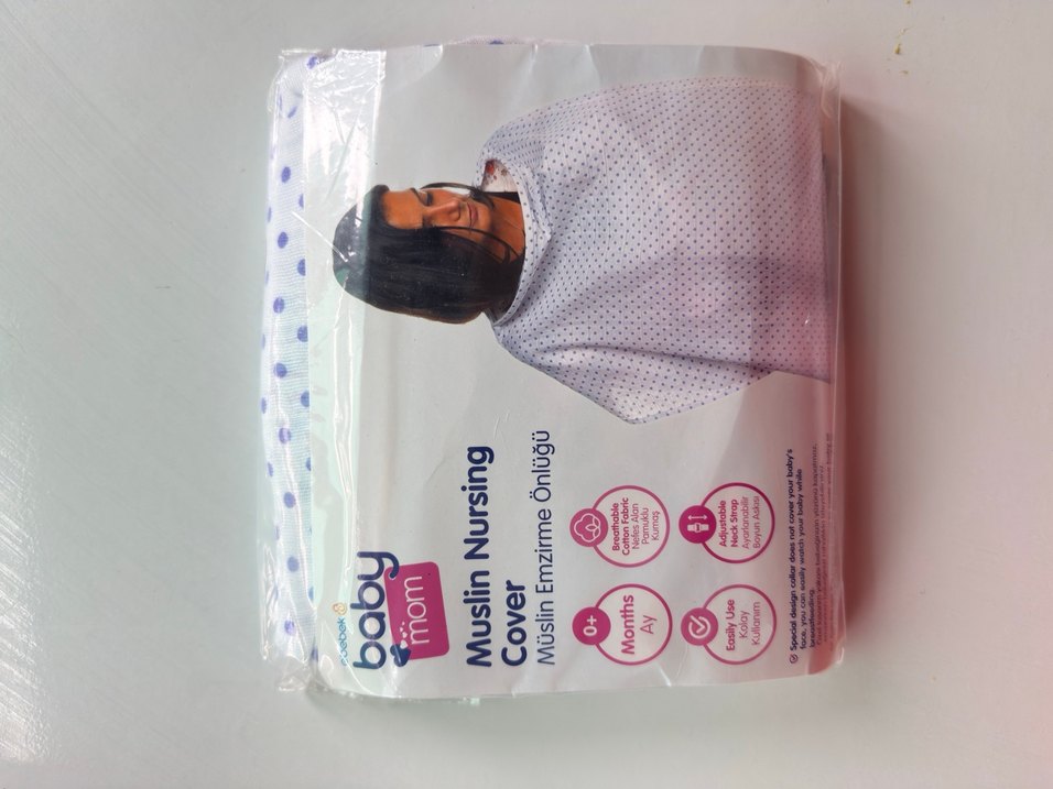 Kapüşonlu ve kısa kollu, uzun boylu emzirme önlüğü. Plastik malzemeden, pastel desenli, bol kesim ve cırt cırtlıdır.