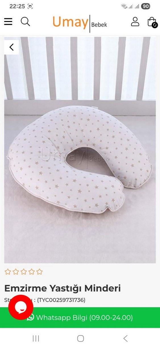 Yumuşak kumaştan yapılmış, pastel tonlarda hafif yıldız desenli beyaz hamilelik ve emzirme yastığıdır. fitilli çift yönlü kılıflı Umay bebek markası
