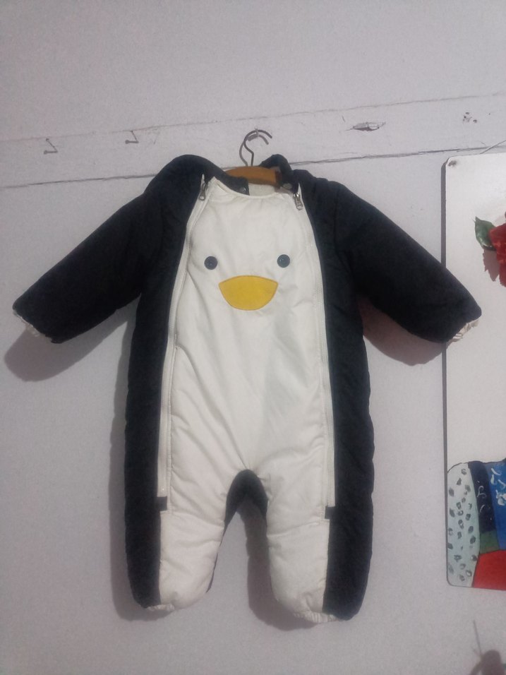 Bebek erkek için beyaz ve koyu renklerde, baskılı ördek yüzlü, yumuşak ve sıcak tutan fleece kumaştan puff mont.