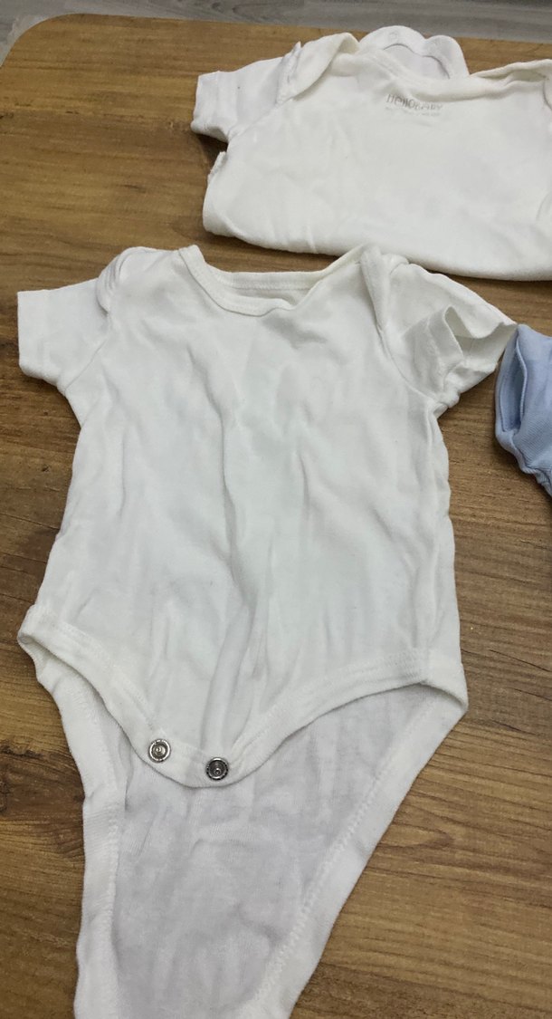 Yumuşak pamuktan yapılmış beyaz kısa kollu bebek body, alt kısmında çıtçıtlı ve sade tarzda, rahat kullanım için uygundur.