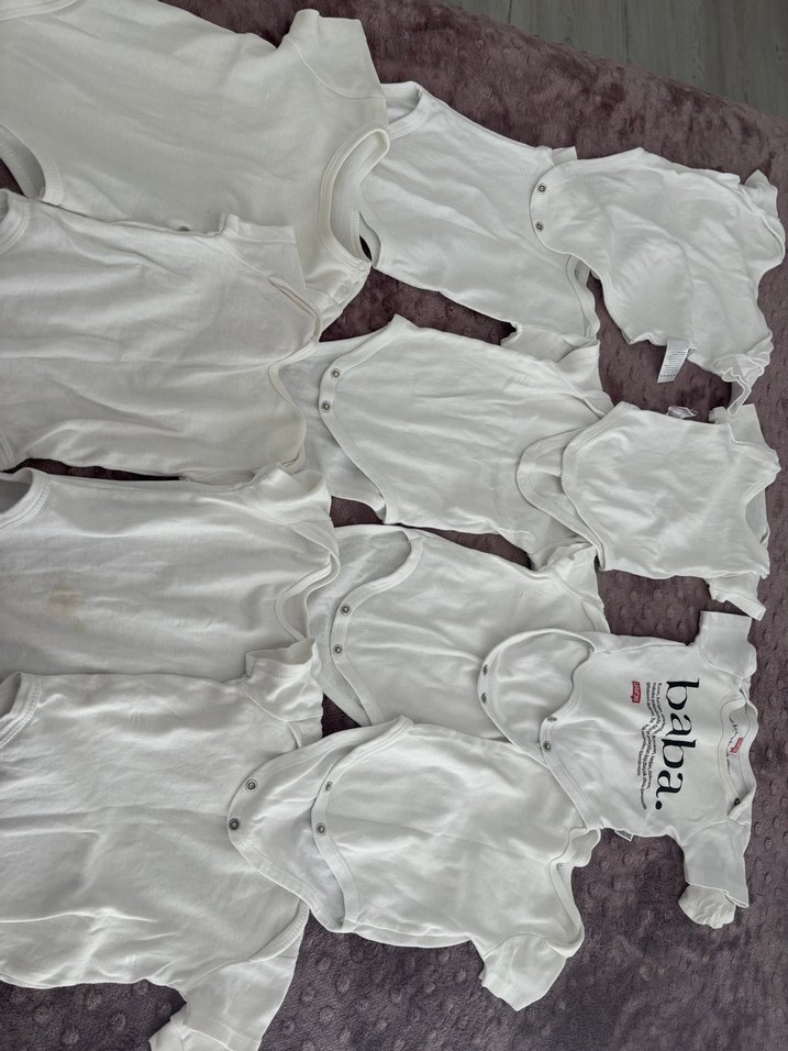Yumuşak pamuklu, kısa kollu ve yuvarlak yakalı bebek erkek body. Beyaz, desensiz ve rahat sokak stili için uygun. Effortless chic tarzı.