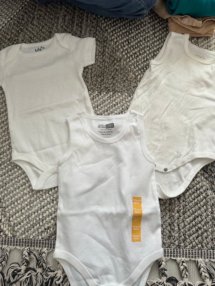 Bebek erkekler için beyaz, kolsuz ve pamuklu body. Yuvarlak yakalı, sade tasarımlı ve rahat kullanımlı. 6.9.12 ay 9 ayda hafif sararma var