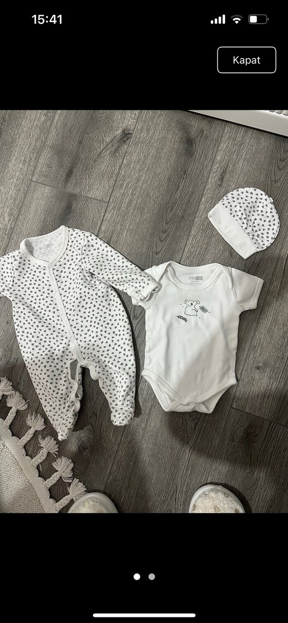 Bebek Erkek Beyaz Nakışlı 3'lü Pamuklu Takım