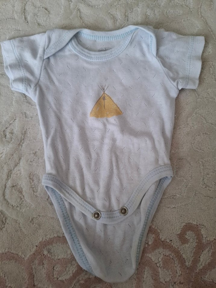 Yumuşak pamuklu, kısa kollu ve bisiklet yaka bebek body, pastel bohem çadır desenli ve alt kısmında düğmeli.