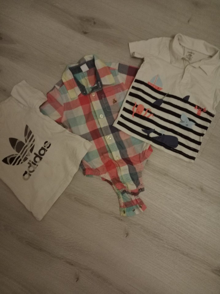Bebek erkek için çok renkli, kısa Kareli, çizgili ve Adidas baskılı tişörkolay kullanım için cırt cırtlı kapanış içerir.iki ürün adidas yazısının altında leke var
