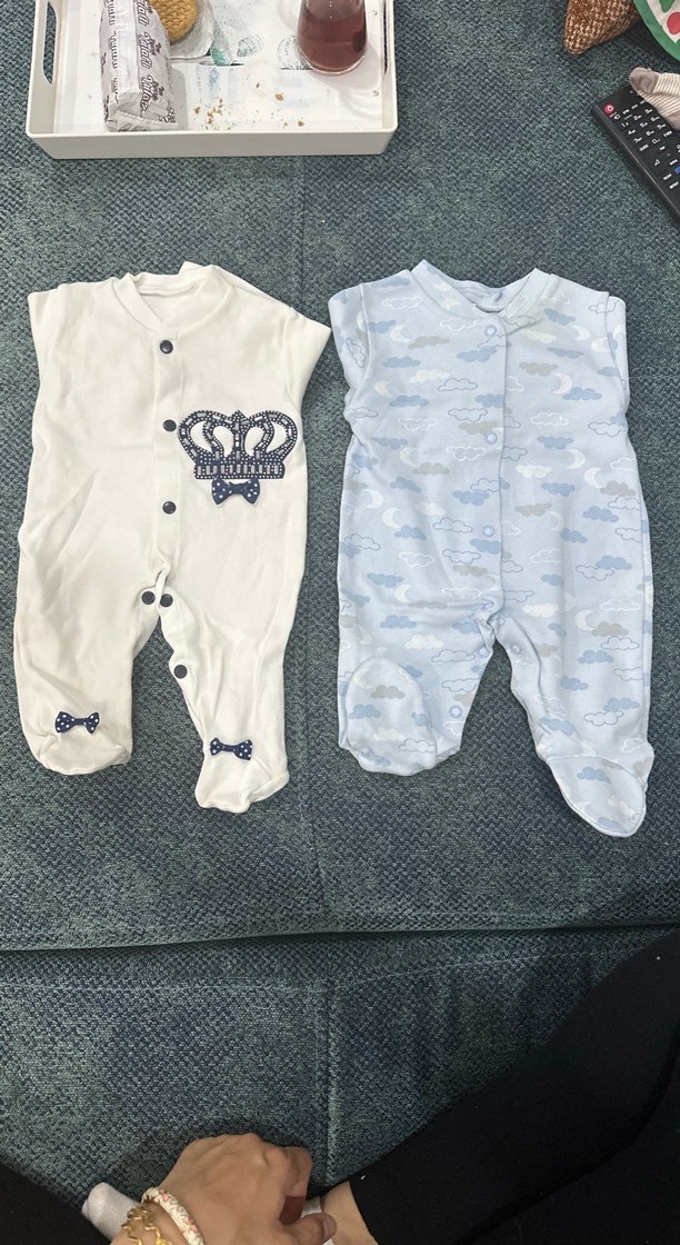 Düğmeli, nakışlı ve pastel tonlarda, kolsuz bebek erkek tulumu. Yumuşak ve sıcak kumaştan, sokak stili için uygun. İkili fiyattır