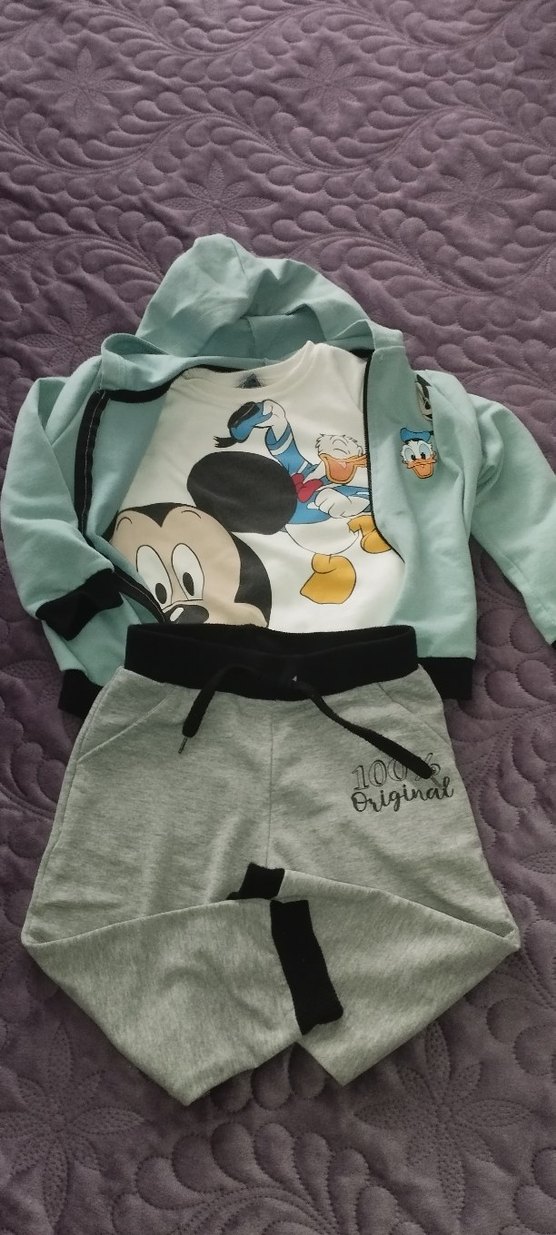 Yumuşak fleece kumaştan, baskılı uzun kollu bisiklet yaka üst ve fermuarlı pantolon içeren gri bebek erkek eşofman takımı. Rahat sokak stili ve çizgi karakterler içerir.