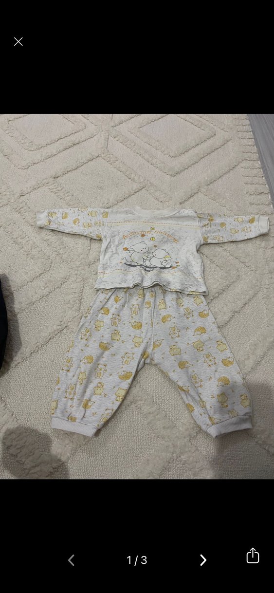 Gri renkte, uzun kollu, triko kumaştan bebek erkek takım. Üstü ve pantolonu desenli, rahat ve yumuşak kumaşlıdır.