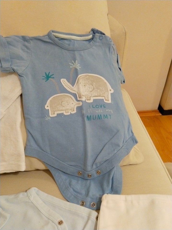 Yumuşak pamuklu kısa kollu bebek erkek hastane kıyafeti, pastel beyaz ve mavi tonlarda, sade ve rahat tasarımlara sahip. toplam 7 parca tertemizdir