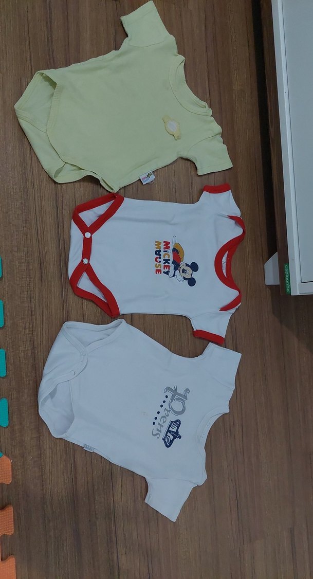 Pamuklu, kısa kollu, yuvarlak yakalı ve cırt cırtlı kapamalı üçlü bebek erkek body seti. Baskılı desenler ve açık renkler içerir.