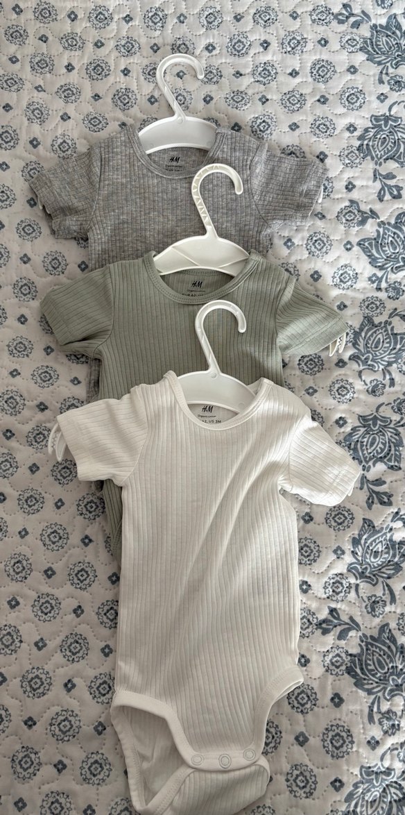 Kısa kollu, pamuklu, örme dokulu ve bisiklet yaka bebek erkek çıtçıtlı body. Gri, yeşilimsi ve beyaz renk seçenekleriyle rahat bir normcore tarz sunar. 2-4 ay. Hiç giyilmedi. Üçü de gönderilecektir