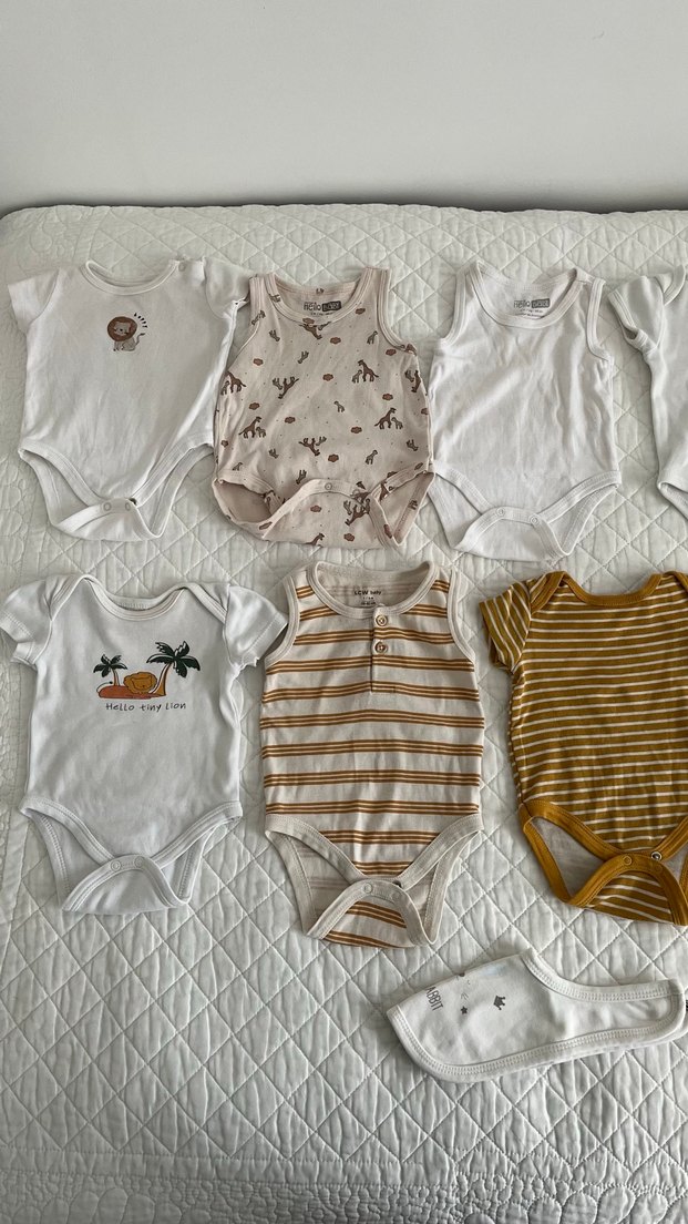 Hello baby, defacto ve lcw ürünleridir bir iki tane yabancı marka var onlarında kumaşı çok güzel Yumuşak pamuklu kumaştan, kısa kollu ve açık Düz, çizgili ve desenli modeller rahat yakaya sahip. Hepsi yeni doğan ve 1 3 ay 3 ay şeklindedir 13 çift çorap 12 parça zıbın 2 parça içlik atlet 1 adet eldiven 1 adet önlük Piyasa da tek zıbın fiyatı şuan 150₺ den başlıyor her biri bir ik