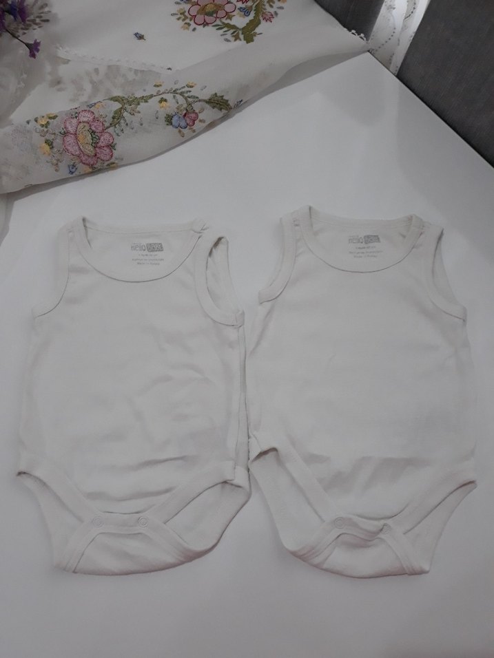Yumuşak pamuktan üretilmiş, kolsuz ve straplez yakalı beyaz bebek erkek-kız zıbın atlet sade ve rahat kullanıma uygundur. az kullanılmıştır hiç bir kusuru yoktur erkek bebeklerde 56cm boya kadar olur