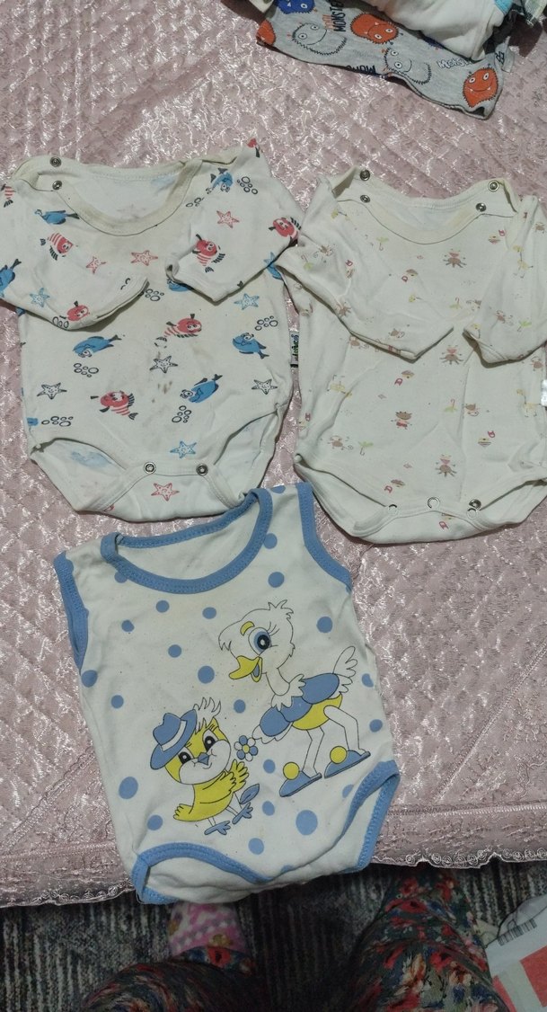 Pamuklu, nakışlı ve dantelli kolsuz bebek erkek body. Yuvarlak yaka ve pastel renklerde, eğlenceli desenlere sahip.üçlü ürün ufak tefek lekelenme var