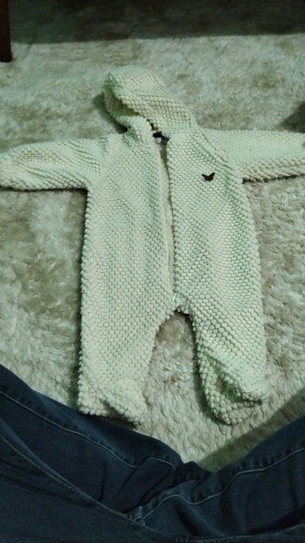 Bebek Erkek Örgü Beyaz Tulum Kapüşonlu