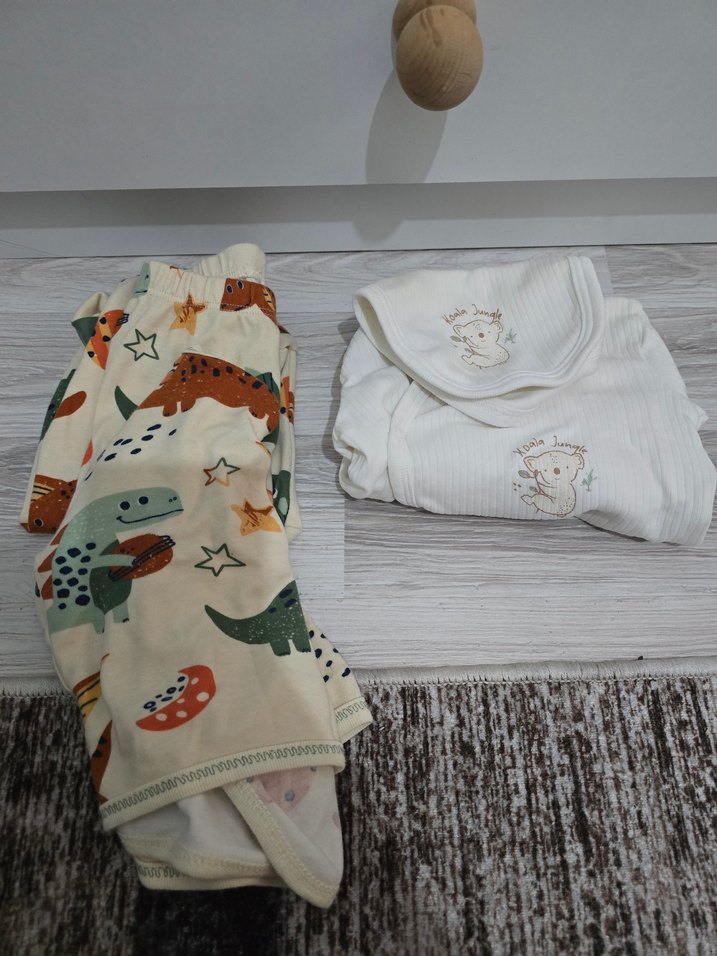 Bebek Erkek Örme Pamuklu Dinozor Desenli Takım