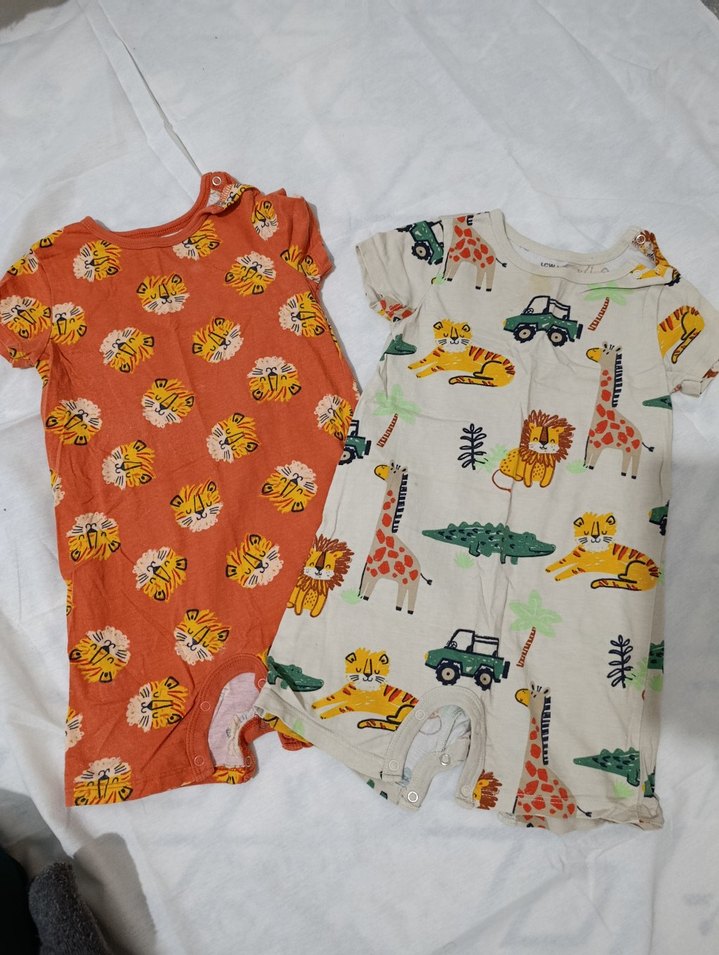 Pamuklu, kısa kollu ve bisiklet yakalı bebek erkek tulumları, eğlenceli baskılı desenlerle renkli tasarıma sahip. toplam fiyat