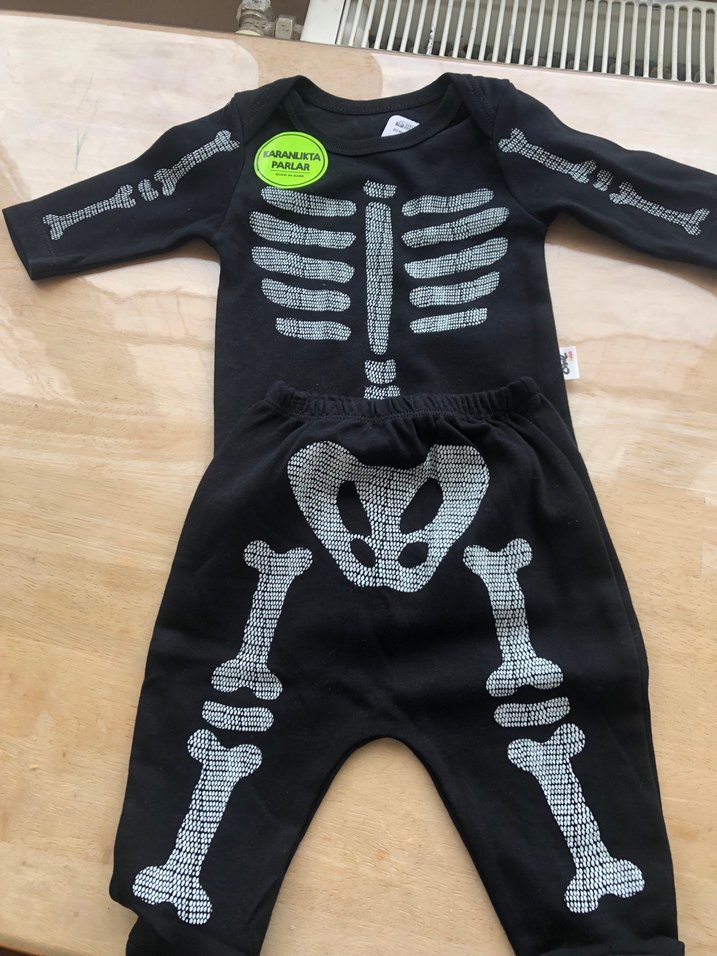 Bebek Erkek Siyah İskelet Desenli Uzun Kollu