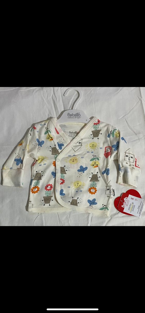Yumuşak pamuklu, uzun kollu, düğmeli ve baskılı desenli açık renkli bebek erkek body. Sokak stiline uygun rahat tasarım. 3 aylık bebek için uygundur. Ürün kullanılmamıştır, etiketi üzerindedir. Değişim ce iade yoktur.