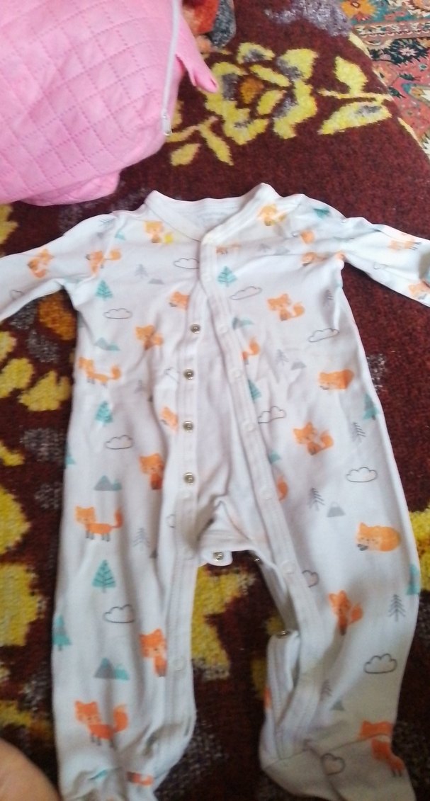 Beyaz, uzun kollu, düğmeli ve yumuşak fleece kumaştan yapılmış, desenli bebek erkek tulumu.