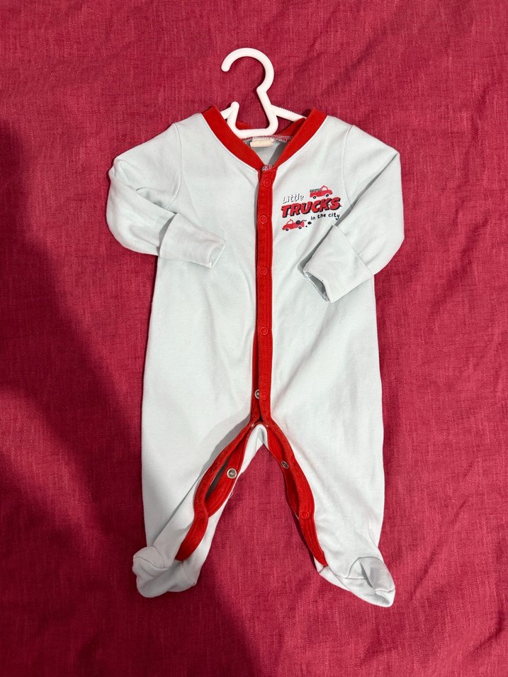 Bebek erkek tulumu uzun kollu, düğmeli ve yumuşak, sıcak kumaştan üretilmiştir. Renkli baskılı ve bisiklet yaka detaylıdır.