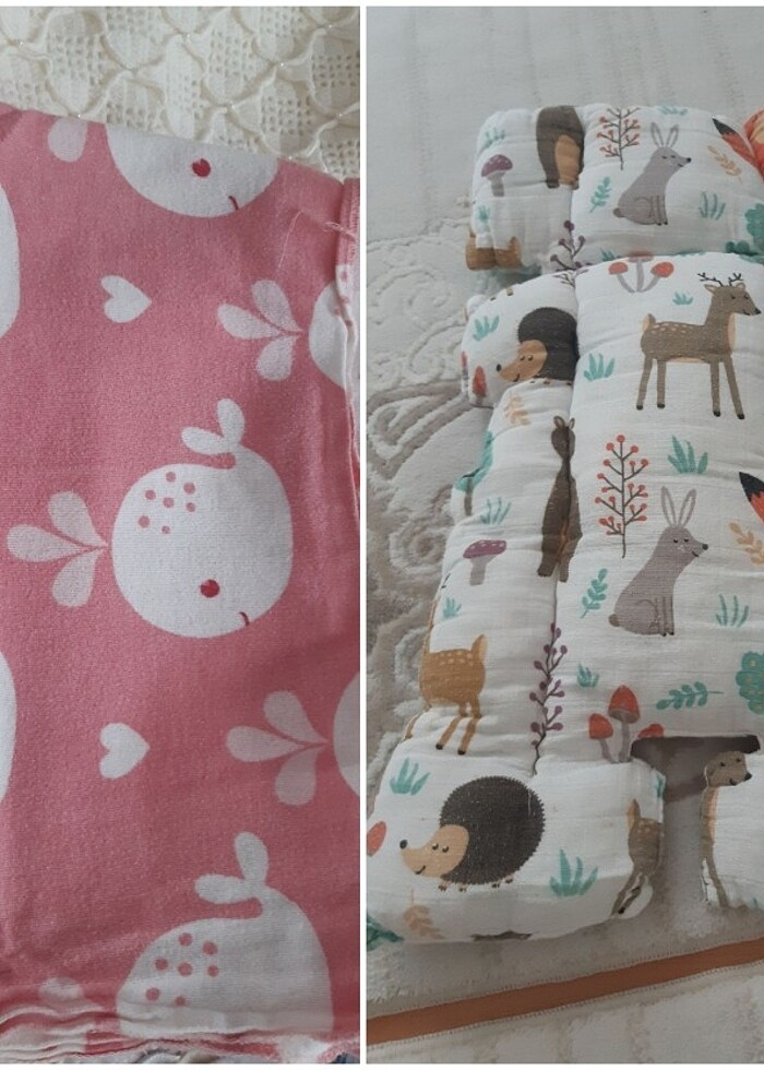Bebek flanel battaniye ve anakucagi minderi