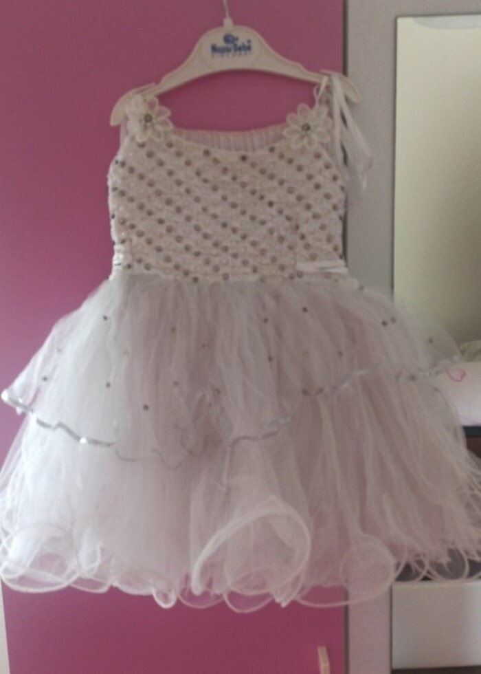 Bir kez altı ay kinada kullanıldı defosuz bebek gelinlik savorawski taşlı inci yapıştırmalı üç kat tüllü gelinlik omuzdan kurdele bağlamalı bebek gelinlik