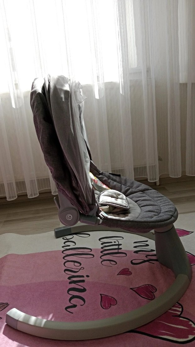 Gri renkli, yumuşak dolgulu ve ayarlanabilir yapıya sahip bebek ana kucağı. 3 kademeli oturma pozisyonu, 5 programlı sallama hızı mevcuttur, 14 kiloya kadar oturabiliyor. kızım hastanede yatınca kullanamadım kutudan açıldığı gibi duruyor hiç kullanmadım.