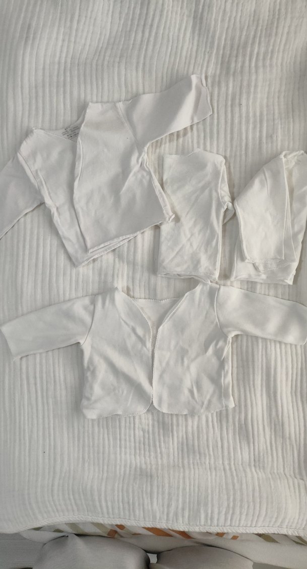 Yumuşak keten kumaştan yapılmış beyaz uzun kollu bebek hastane kıyafeti, sade ve rahat tasarıma sahip. Yeni doğanlar için zahmetsiz şıklık sunar.